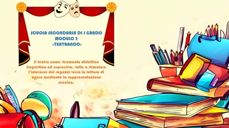 - 🎭🇬🇧 Teatrando: Dramatizing in company: progetto basato sulla messa in scena di un’opera teatrale in lingua inglese per ragazzi che rappresenta un’opportunità unica per coniugare apprendimento e divertimento, promuovendo lo sviluppo integrale dei partecipanti. Attraverso il teatro, i ragazzi possono esplorare nuovi mondi, esprimere la loro creatività e crescere sia a livello personale che collettivo.